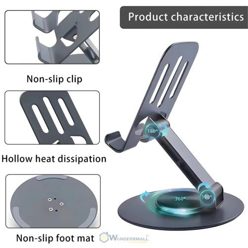 • Mirgindia 360° Alloy Mobile Stand for Desk, Foldable Design with Stable Rotational Metallic Round Ba