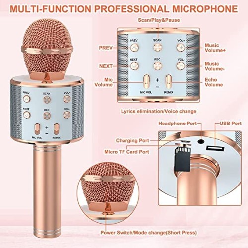 MirgIndia Mic With Speaker  Bluetooth Wireless Microphone for Karaoke, Gift for Kids Boys/Girls/Adults Birthday, Party, Christmas Home (Multicolor) a (Rose Gold)