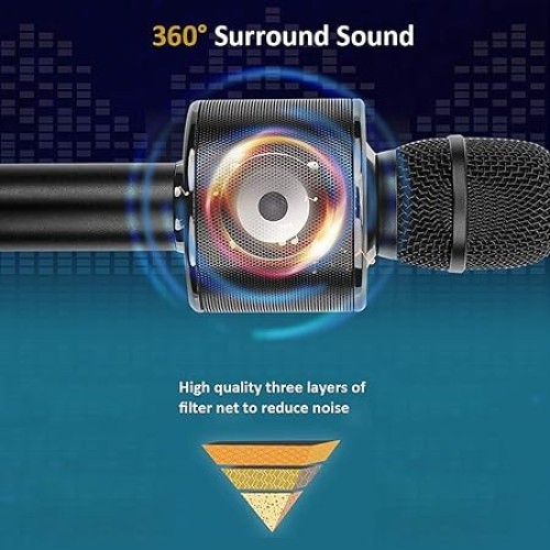 The sound quality of the Handheld Karaoke Microphone improved by 30% with the Update Bass Diaphragm Cavity, which gives you the stronger shock and heavier sense. Treble and heavy bass spread more clearly, the echo effect is superior, making you feel like being in a party!