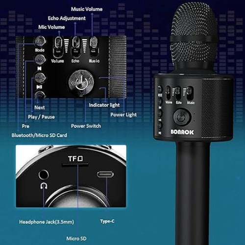THE BEST KARAOKE MIKE : A handheld condenser Mike microphone with a portable mini home KTV player ; Ideal for music fancier, allows you to sing and record you voice anywhere, such as in car travelling, BBQ, family dinner and outdoor party so on; Fit for singing, instrument recording, interviews, podcasting, etc. Can be also used as portable bluetooth speaker