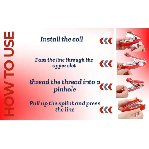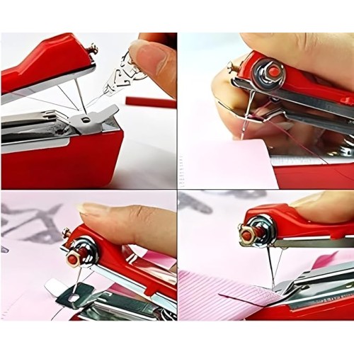 Garments Cloths-self-feeding Mini Hand Ami Sewing Machine is useful for mending rip, fray and rents in garments. You need only up-down motion like a stapler to sew with this machine.