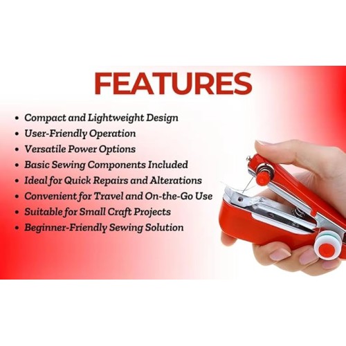 This hand held sewing machine compact and portable, excellent for on-the-spot repairs and is lightweight and powerful.
