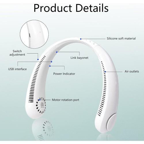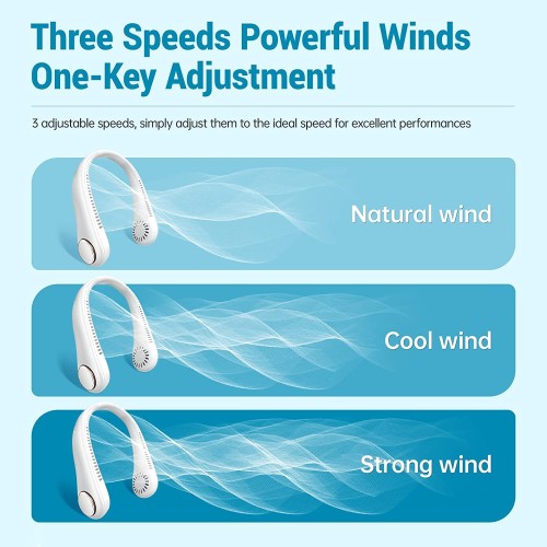 · 3 Adjustable Speed Levels - This hands-free personal fan has 3 speed levels including low/medium/high speed. You can adjust the appropriate fan speed by pressing the power button. Let you feel comfortable and cool during the summer. Just bring this portable neck fan home right now as the best gift for your family or friends.
