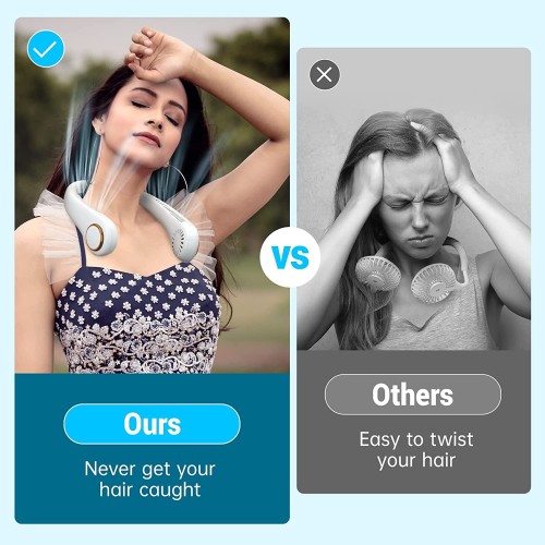 · Low Noise & Bladeless - Portable fan is worn around the neck, uses bladeless design, quiet, and the wind is more powerful. And it will not pinch hair.