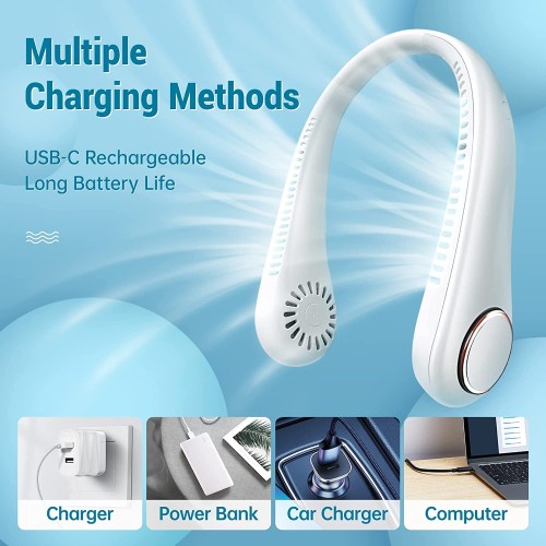 · Compact Design and Wide Application - The personal neck fan weigths about 226Gm and is ultra-lightweight, less strain on the neck. This portable fan is ideal for personal cooling, office, outdoor activities, such as camping, traveling, hiking, climbing and sports, etc. It is unisex style, suitable for men and women everyday use.
