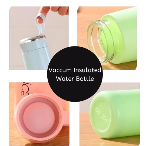 MirgIndiaNice Bottle 400ML for Offices and Kitchen Inner Glass and Outer Plastic Layer Cold Water Bottle, Water Storage and Also use for Coffee Tumbler, Pack of 1, ( Mix Colour ) 400ml