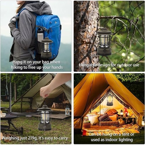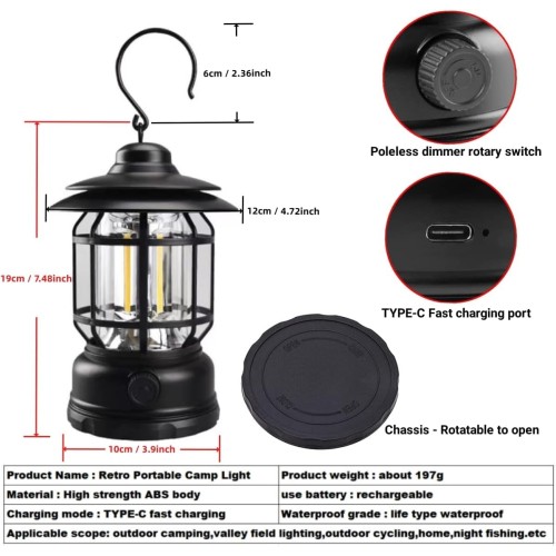 • MirgIndia Camping Light Retro Style Lighting Battery Type-c Rechargeable Dimmable Tent Lamp Outdoor