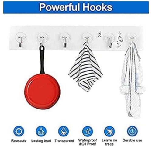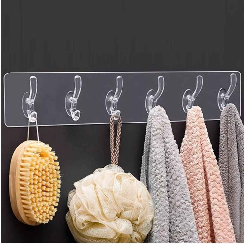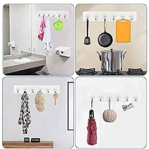 • MirgIndia Sticker Hooks for Wall  (Pack of 1- 6 Hook Strip) 6 in 1 Wall Hook Sticker Wall Hanger, W