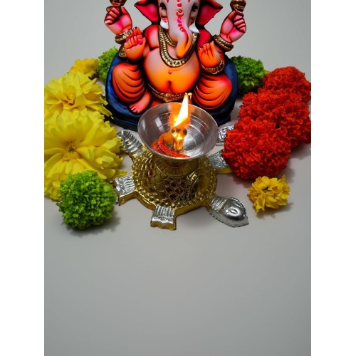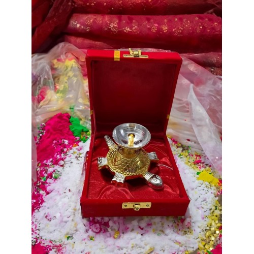 • MirgIndia Tortoise Brass Diya Brass Diya with Velvet Box| Dipawali | for Oil/Ghee | Tortoise/Kachua