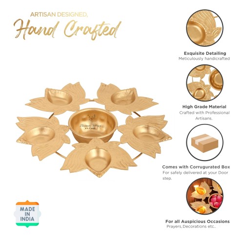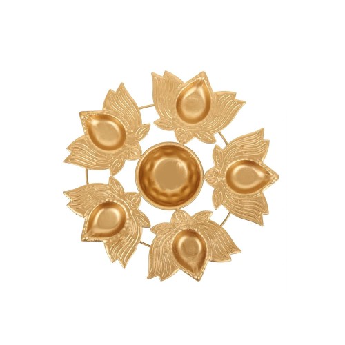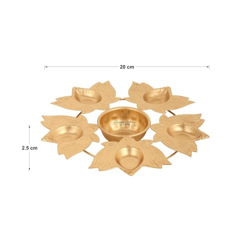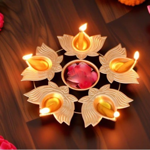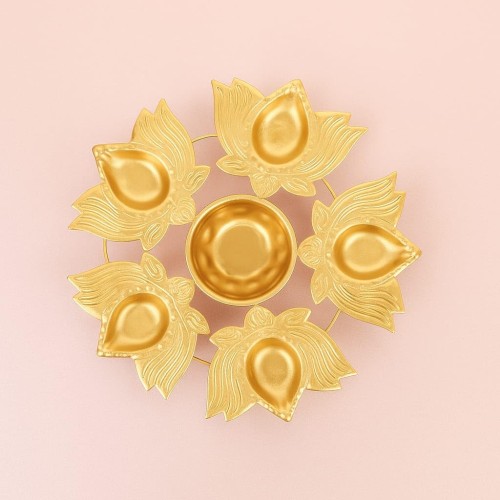 · Package Content - One golden color metal handcrafted traditional designer urli with 5 Lotus shape diyas